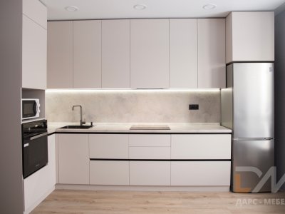 Размеры 3780*1450, фасад МДФ ПФХ, столешница Скиф, еврозапил, фурнитура Boyard, ящики скрытый монтаж. - Стеновая панель повышенной влагостойкости 10 мм «Slotex» - Ручки GOLA - Фурнитура - петли с доводчиком, ящики скрытый монтаж с доводчиком - Подсветка *Стоимость указана на момент публикации и подлежит уточнению при конкретном заказе. Кухонное оборудование, бытовая техника в стоимость не входят. Данное объявление не является публичной офертой.
