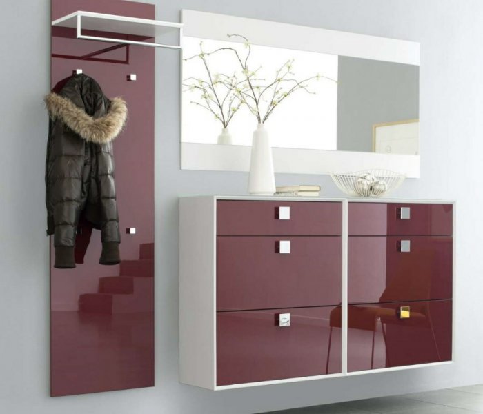Вешалка и навесная двухсекционная тумба (на 6 ящиков). Современная фурнитура.