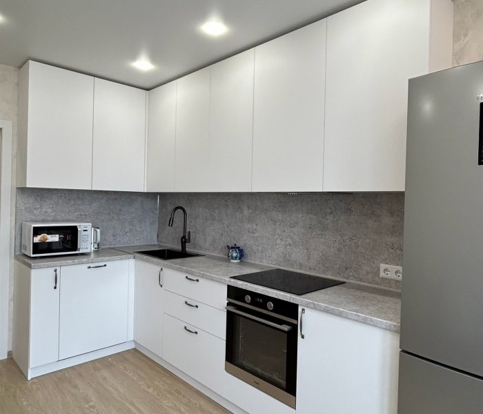 Цена - 210000 руб.* Фасады AGT, столешница SLOTEX , фурнитура HETTICH, направляющие скрытый монтаж с доводчиком, сушка нержавейка , с подсветкой. *Стоимость указана на момент публикации и подлежит уточнению при конкретном заказе. Кухонное оборудование, бытовая техника в стоимость не входят. Данное объявление не является публичной офертой.