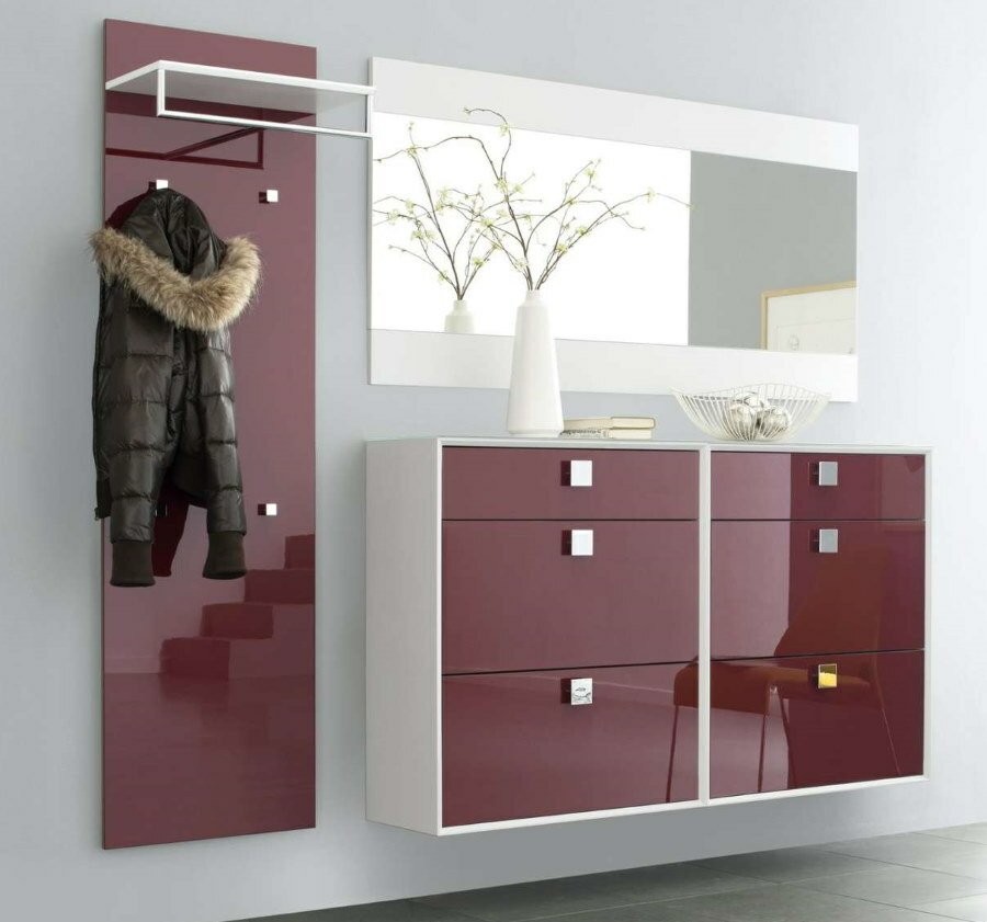 Вешалка и навесная двухсекционная тумба (на 6 ящиков). Современная фурнитура.