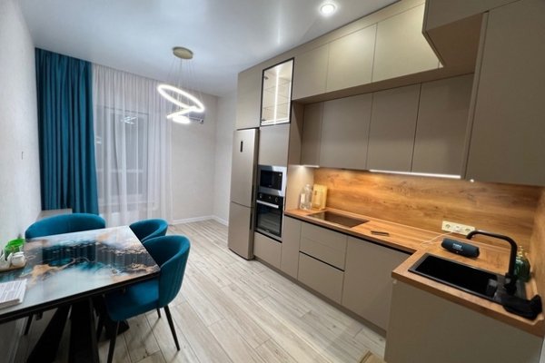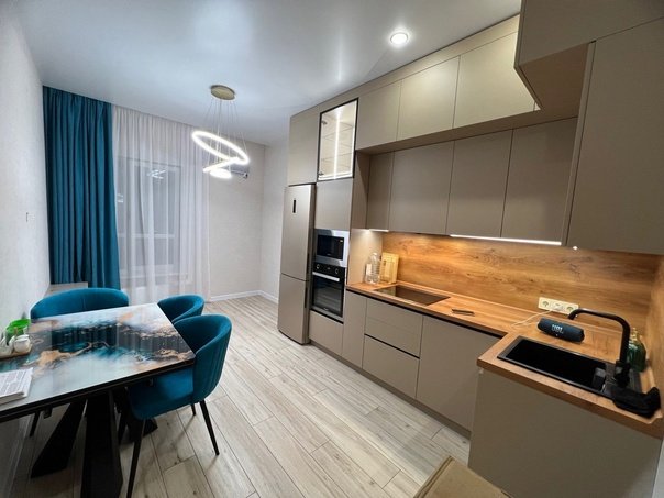 Цена - 210000 руб.* Фасады AGT, столешница SLOTEX , фурнитура HETTICH, направляющие скрытый монтаж с доводчиком, сушка нержавейка , с подсветкой. *Стоимость указана на момент публикации и подлежит уточнению при конкретном заказе. Кухонное оборудование, бытовая техника в стоимость не входят. Данное объявление не является публичной офертой.