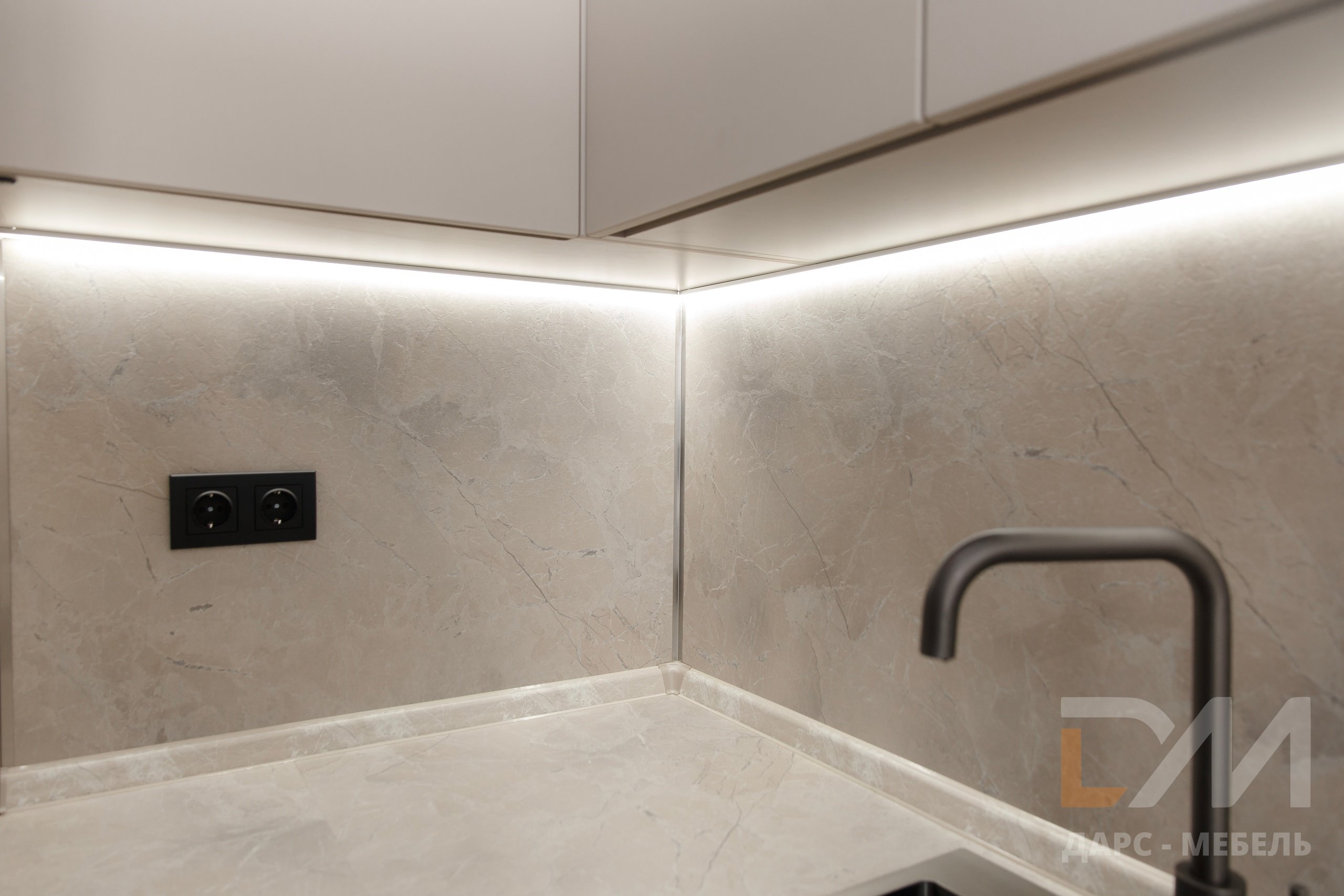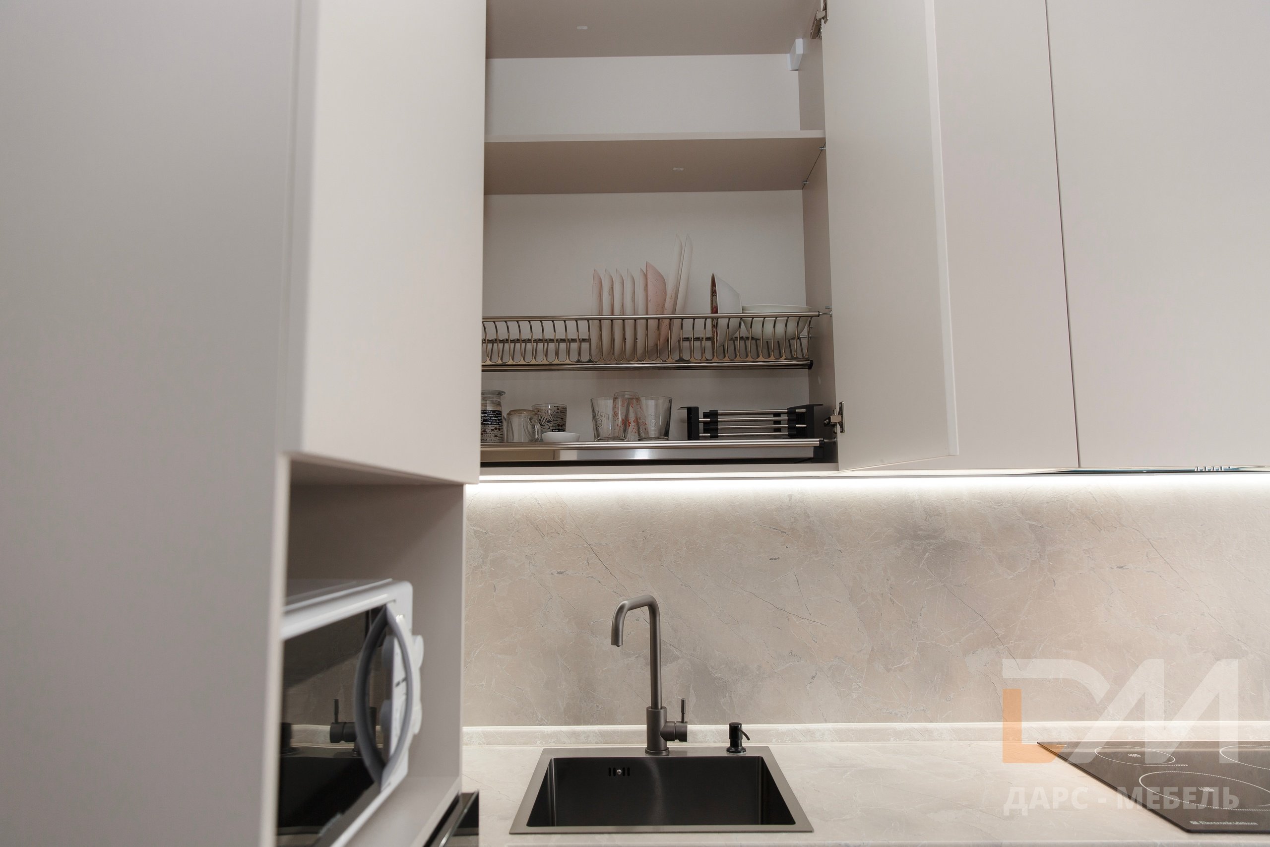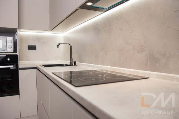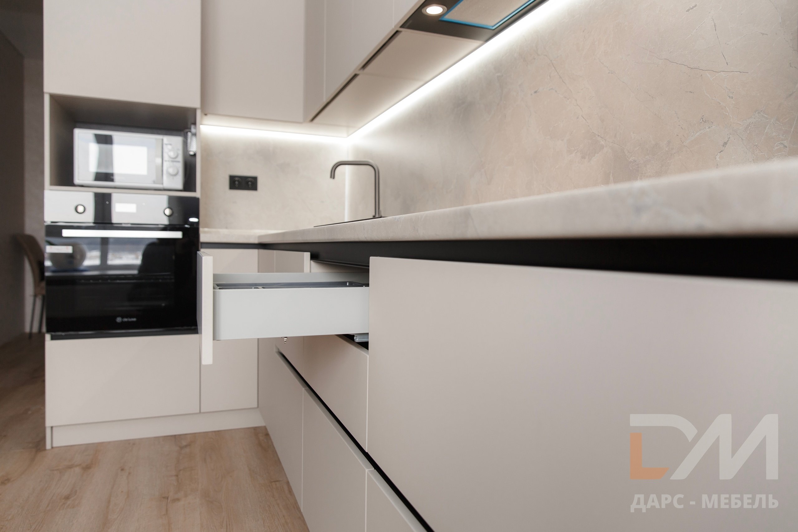 Размеры 3780*1450, фасад МДФ ПФХ, столешница Скиф, еврозапил, фурнитура Boyard, ящики скрытый монтаж. - Стеновая панель повышенной влагостойкости 10 мм «Slotex» - Ручки GOLA - Фурнитура - петли с доводчиком, ящики скрытый монтаж с доводчиком - Подсветка *Стоимость указана на момент публикации и подлежит уточнению при конкретном заказе. Кухонное оборудование, бытовая техника в стоимость не входят. Данное объявление не является публичной офертой.