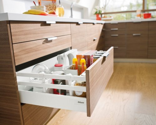 Современные технологии в производстве фурнитуры позволяют создавать выдвижные ящики со скрытым монтажом, использовать микролифт, складываемые конструкции, а также предлагают множество креативных идей для формирования вашего индивидуального пространства для творчества на кухне.